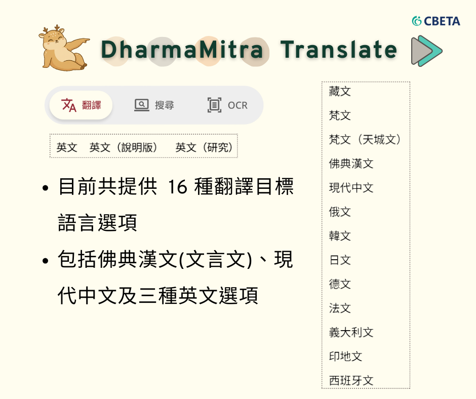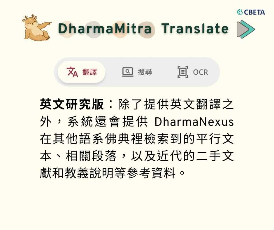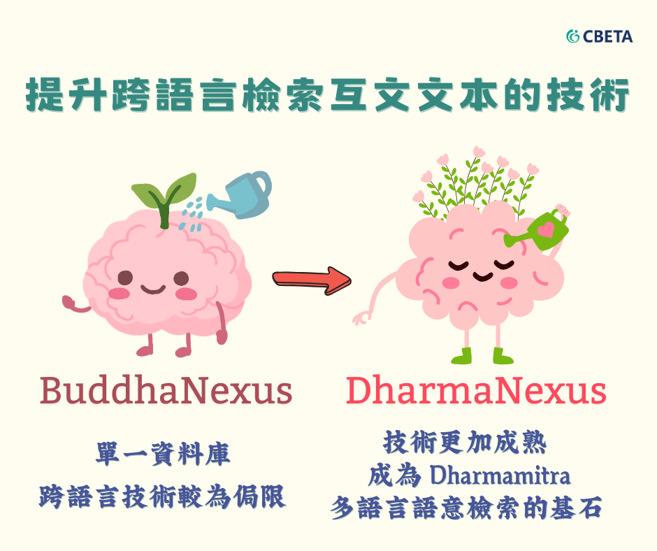 - DharmaNexus:可以視為 BudhhaNexus 2.0,具有更高的跨語言語意檢索技術。