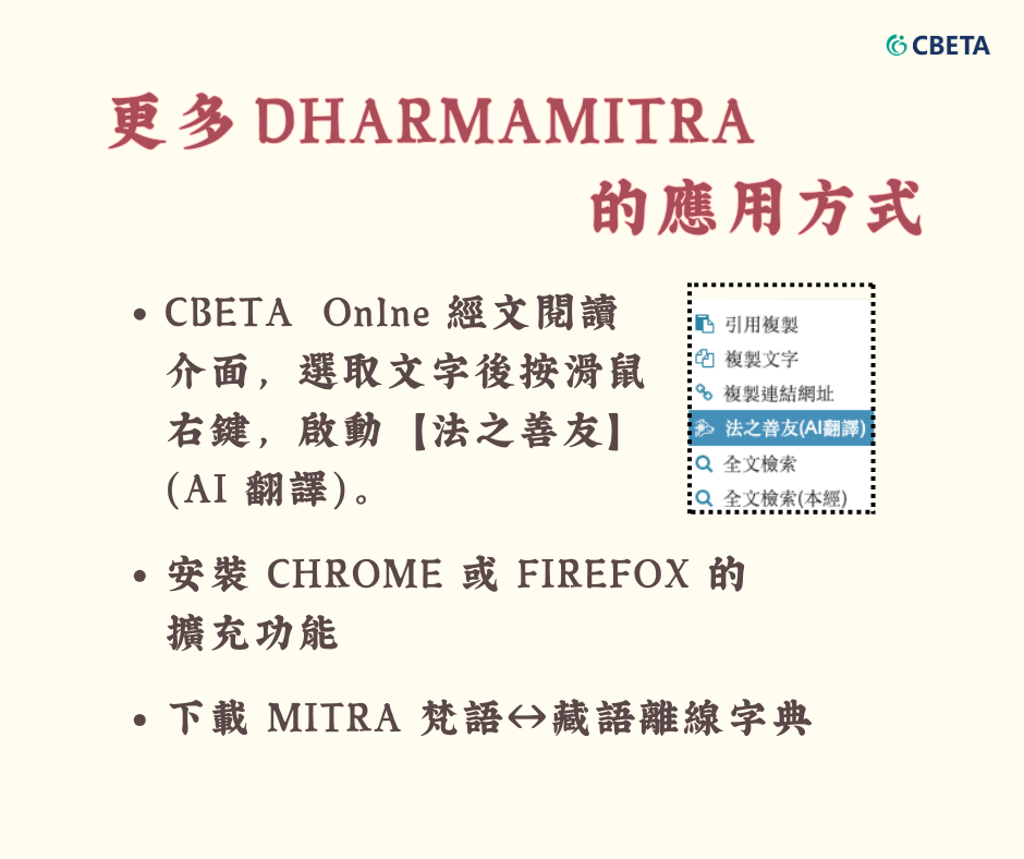 可參考影片介紹:https://dharmamitra.github.io/dharmamitra-guides/mitra_tools/translate/